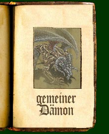 Auf dem Altar sank die Maid in Ohnmacht, als in der Mitte des magischen Kreises ein Wesen erschien, welches jeder Bezeichnung spottete. Unter diesen Umständen, knurrte ich, kann ich euch doch kein freies Geleit gewähren.´Die geflammte Klinge sprang in meine Hand, und nicht zum ersten Male war ich äußerst froh, dass ich damals sie anstelle des Silberhandschuhs gewählt hatte. Beim Kampfe mit Dämonen kam es nun einmal vor allem darauf an, diese Bestien auf einer Ebene zu verletzen, auf welcher sie hauptsächlich existierten. Magie." | |